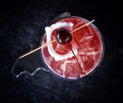 Don Julio Blanco, Ancho Reyes Chile, Blackberry Puree, Fresh Lime, Agave, Finished with a Touch of Spooky Dark Magic